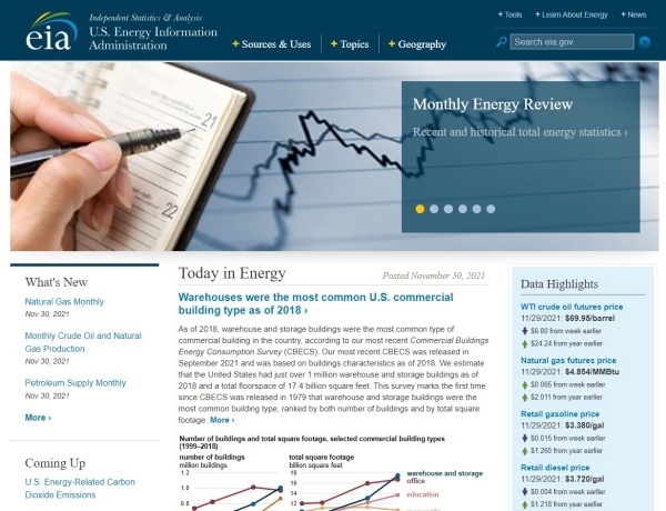 ▲ 에너지정보청(Energy Information Administration, EIA) 홈페이지