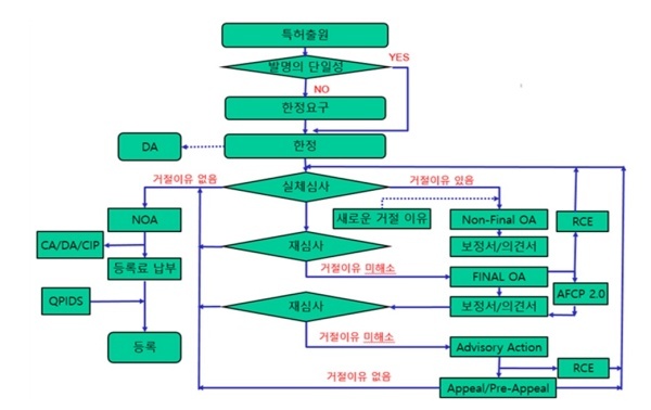 참고로 미국의 경우에 특허법은 1790년 4월 10일 조지 워싱턴 대통령이 서명하여 전세계 최초로 시작됐다. 미국 특허법은 하기와 같은 출원절차를 통해 등록받을 수 있다.