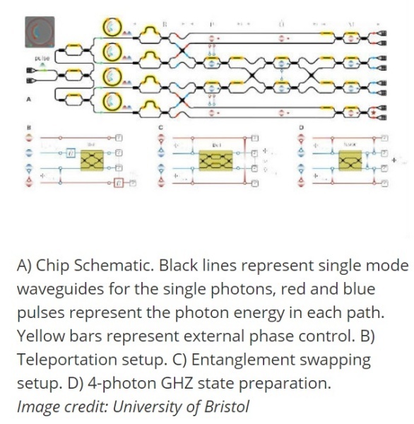 영국 브리스톨대(University of Bristol)에 따르면 덴마크 기술대(Technical University of Denmark)와 공동연구를 통해 두 컴퓨터 칩 사이에서 처음으로 양자 순간 이동을 달성했다.